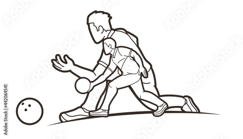 Men Playing Bowling Sport Players Bowler Action Cartoon Graphic Vector