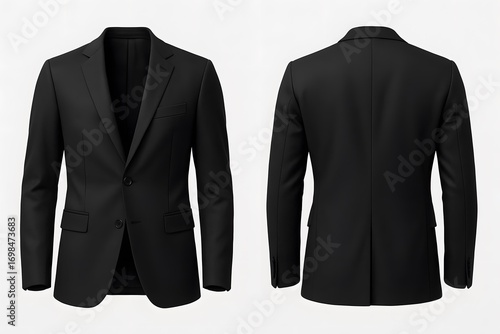 suit, black, jacket, man, blazer, coat, formal, business, office, front, back, clothing, fashion, apparel, design, template, uniform, classic, elegant, style, garment, tailored, collection, presentation, outfit, editable, blank, simple, mock, model, professional, modern, display, fitted, luxury, event, corporate, stylish