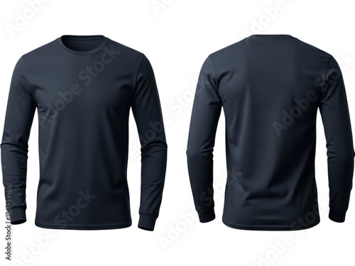 man, t-shirt, long sleeve, dark blue, clothing, transparent, background, front, back, design, graphic, apparel