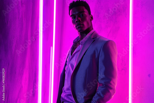 silver, suit, solid, neon, purple, lifestyle, portrait, fashion, background, modern, chic, forward, style, hip, artistic, stylish, iconic, smart, dapper, creative, bold, unique, high-coloured, designer