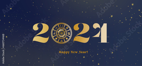 Merry Christmas and 2024 Happy New Year poster. Design template with logo 2024 for celebration and season decoration. Trendy background for branding, banner, cover, card