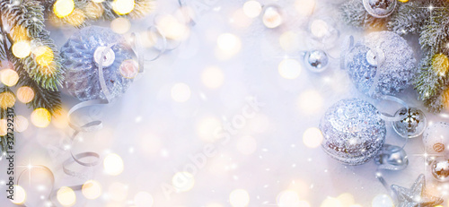 Merry Christmas and Happy New Year, Holidays greeting card with blurred bokeh background