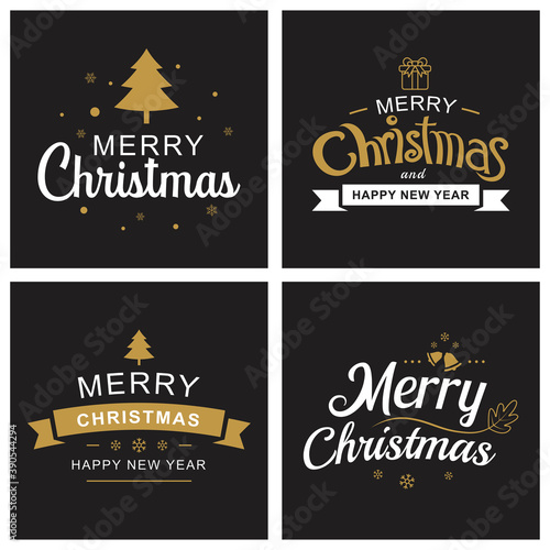 Merry christmas and happy new year typography label with symbols design set. Use for invitation, postcard, poster, greeting card.