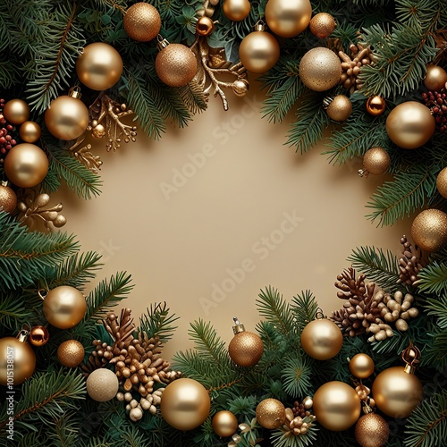 christmas, frame, tree, decoration, holiday, christmas, card, pine, fir, tree branch, winter, ball, border, celebration, year, new, chaplet, green, ornament, new year, gold, holly, greeting, vector, illustration, garland, season, christmas tree, red, december, decor