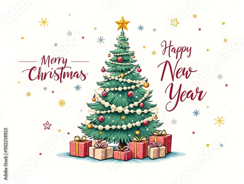 Merry Christmas tree and Happy New Year greeting card Illustration