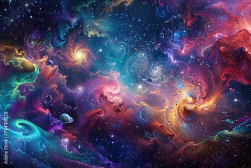 mesmerizing display of cosmic beauty as planets, stars, and galaxies dances..