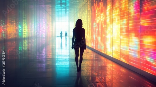 abstract, futuristic, technology, digital, light, neon, corridor, hallway, architecture, interior, modern, design, illumination, colourful, vibrant, glow, symmetry, perspective, minimalist, dynamic, movement, path, paseo, urban, city, surreal, fantasy, science fiction, atmosphere, mood, energy, space, depth, line, shape, high-coloured, gradient, aglow, aethereal, aesthetic, experimental, conceptual, contemporary, surrealism, installation, visualisation, imagination, visual