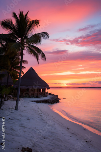 beach, white sand, clearwater, sunset, palm tree, shade, idylli, peaceful, serenity, shoreline, coast, tropical, nature, outdoors, travel, tour tourism, paradise, holiday, relaxation, tranquil, scenery, vacation, destination, pristine, untouched, exotic, beautiful, breathtaking, picturesque, ocean, coastal, sandbeach, golden hour, horizon, summer, natural beauty, aquatic