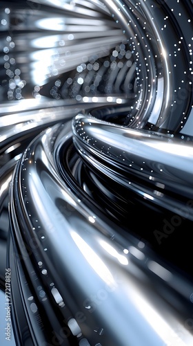 Mesmerizing Vortex of Sleek Monochrome Metallic Curves and Swirls in Cinematic 3D Rendering