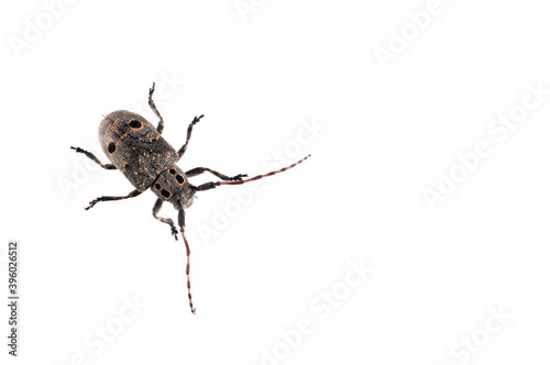 Mesosa curculionoides (Cerambycidae family) on white background.