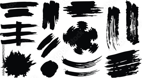 messy, ink, paint, brush, set, stroke, vector, grunge, black, texture