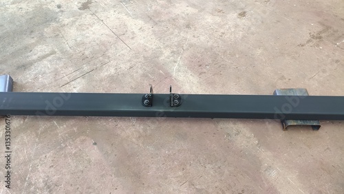 Metal Beam with Mounting Brackets on a Gray Background