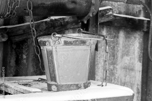 well, bucket, pail, old, water, rural, traditional, village, wooden, antique, vintage, country, outdoors, countryside, thirst, thirsty, aged, drink, past, rusted, farmstead, freshness, metal, mediaeval, peasant, agriculture, ancient, grunge, concrete