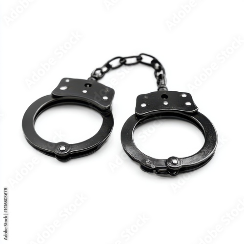 handcuff, metal, chain, crime, nailing, police, law, security, justice, criminal, steel, equipment, tool, control, protection, shiny, closeup, restriction, device, accessory, safety, link, ring, iron, isolated, object, white, background, pair