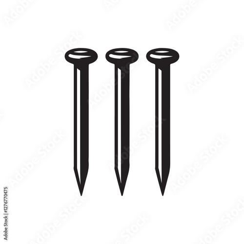 Metal nails, construction hardware, black and white illustration, industrial design, minimalist style