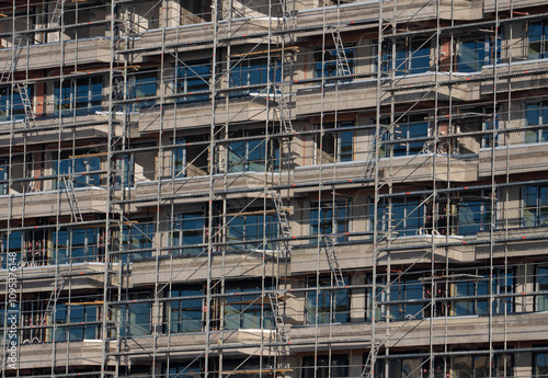 construction, architecture, scaffolding, house, city, structure, scaffold, site, business, facades, urban, industry, office, glasses, build, window, home, new, window, industrial, renovation, skyscraper, exterior, apartment, cement, concrete, construction site, development, engineering, equipment, estate