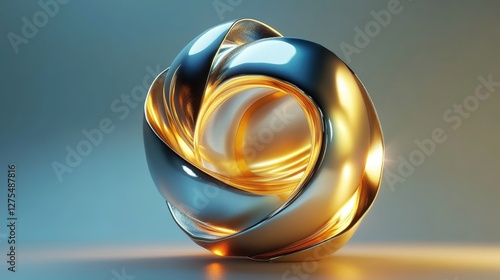 Metallic 3D shapes in fluid motion with gradient colors, creating a captivating and futuristic abstract design with sleek, dynamic textures