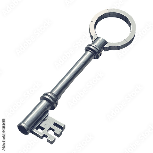 Metallic Key Antique Style Detailed Graphic Isolated Hand Drawn Vector Illustration