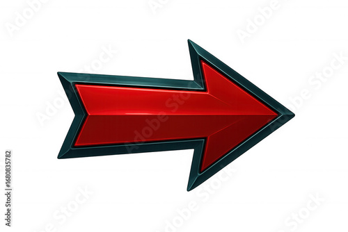 Metallic red arrow with dark border directing rightward, standing against transparent backdrop, signaling navigation or emphasizing key details