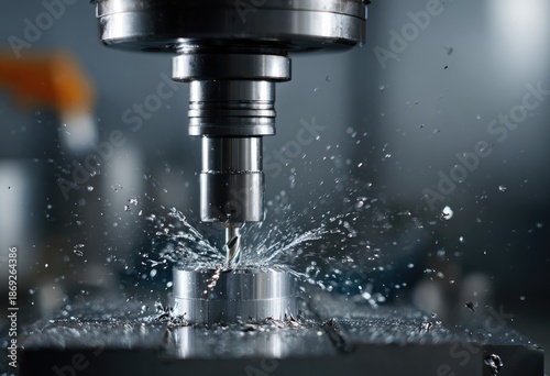 metal, machining, tool, drill, water, spray, precision, manufacturing, industrial, cutting, processing, metalworking, drilling, spatter, fluid, coolant, high speed, detail, closeup, technology, industry, engineering, equipment, process, steel, aluminium, part, operation, modern, accuracy, force, power, motion, speed, impact, energy, controlled, efficient, factory
