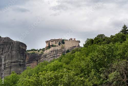 meteor, monastery, greece, mountain, rock, landscape, nature, mountain, rock, stone, view, europa, green, forest, rocky, canyon