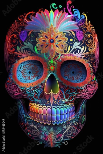 Mexican roses skull. Mexican roses skull. Vector illustration. Dia de los muertos shugar colorful head Generative Ai