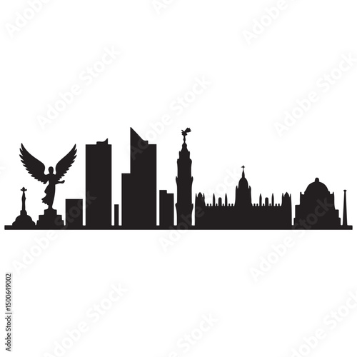 Mexico city skyline horizontal banner. Black Mexico city. Vector template for your design. Vector black silhouette. with white background