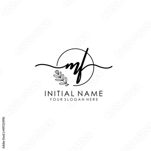 MF Luxury initial handwriting logo with flower template, logo for beauty, fashion, wedding, photography