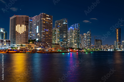 Miami Skyline Panorama after sunset. Miami, Florida, USA.