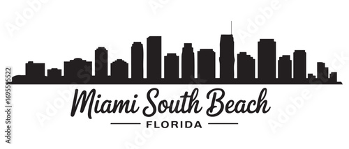 Miami South Beach skyline horizontal banner. Miami South Beach, Florida. Vector black silhouette. with white background