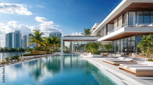 luxury home, pool, miami, waterfront, luxury, real estate, house, home, property, villa, skyline, architecture, modern, design, swimming, relaxation, vacation, travel, resort, estate, summer, sun, water, beach, ocean, palm, tree, sky, cloud, blue, tropical, paradise, wealth, success, rich, elegant, exclusive, idylli, dream, lifestyle, prestige