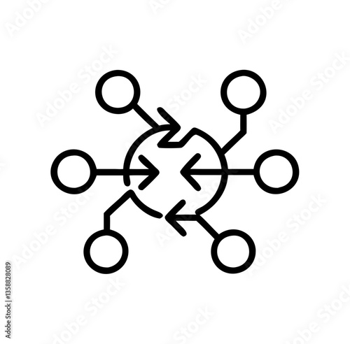 network, icon, symbiotic, relationship, abstract, design, connectivity, minimalism, shape, circle, arrow, black, white, illustration, technology, biology, organism, interaction, ecology, communication, structure, dynamic, system, representation, visual, creativity, concept, art, modern, simple, graphic, symmetry, line, pattern, science, environment, fusion, organic, symbol, no people, digital, decorative, innovation, aesthetic, expression, movement