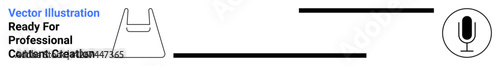 Microphone with sound waves, abstract design lines, and minimalist aesthetic. Ideal for podcasting, audio production, voice tech, broadcasting, media, communication flat landing page banner