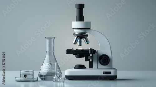 microscope, laboratory, equipment, science, flask, beaker, petri, dish, table, sterile, lens, white, glasses, research, experiment, analysis, technology, medicals, biology, chemistry, scientific, researcher, laboratory, instrument, tool, discover, study, examine, observe, explore, discovery, innovation, solution, cognition, progress