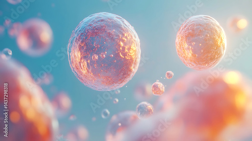 Microscopic cellular world abstract scientific visualization of cells floating in a fluid medium medical research biology and microbiology concept