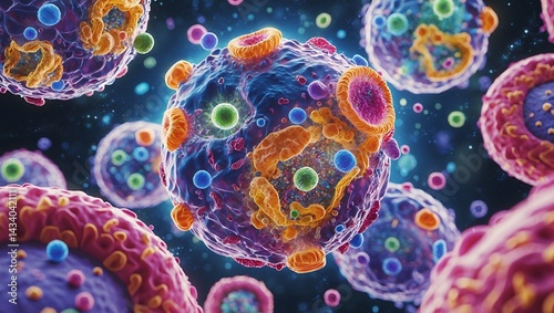 Microscopic universe showcasing vibrant cellular wonders