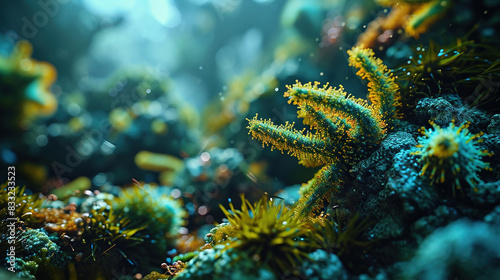 Microscopic View Of Colorful Virus Cells On Bokeh Blur Background