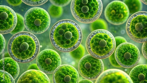 Microscopic view of green algae cells structure, green, algae, cells, microscopic, biology, science