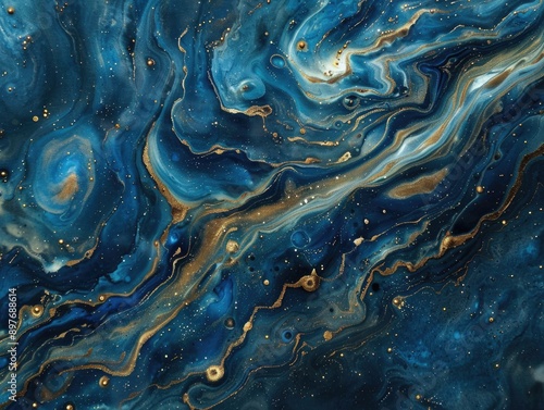 Microstock image of a cosmic nebula with swirling blue and gold hues, representing the vastness of space.