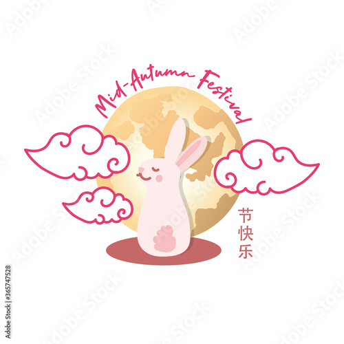 mid autumn festival card with rabbit and moon flat style icon
