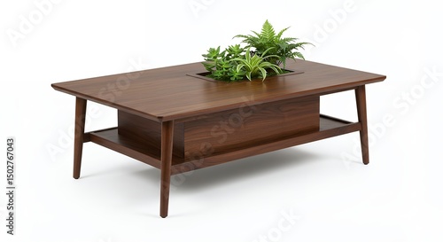 hot drink, table, modern, wood, brown, furniture, plant, plant, potted, storage, interior, design, decor, home, living, room, isolated, studio, object, wood grain, dark, planter, leg, simple, wooden, shelf, style, copy, space, product, image