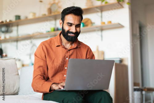 laptop, cyberspace, indian, male, adult, interior, sitting, indoor, couch, computer, living room, freelancer, shirt, arabian, bearded, lifestyle, study, home, concept, online, man, domestic, happy, hindu, sofa, young, arab, website, business, businessman, work, specialist, technology, modern, career, professional, e-learning, casual attire, distance, job, guy, people, middle eastern, contraption, background, student, arabic