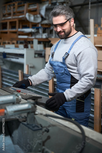 specialist, manufacturing, equipment, device, interior, environmentally friendly, smiling, work, frame, rack, compactor, indoor, clothing, person, caucasian, work clothes, automatic, male, milling, bearded, high technology, contraption, professional, employee, uniform, profession, emboss, room, man, men at work, working, middle-aged, workplace, fastening, overall