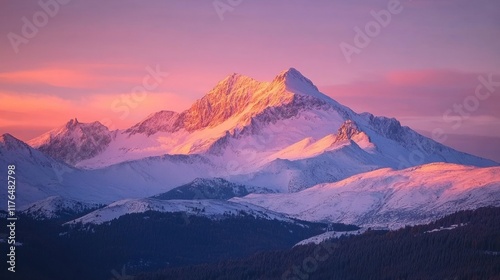 Miedziane peak illuminated by the warm glow of sunrise, with Szpiglasowa Przelecz and the rugged Tatras stretching out beneath a pastel-