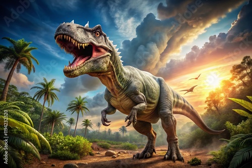 Mighty Dinosaur Roars: Prehistoric Beast in Majestic Pose, Ample Copy Space