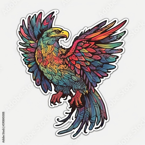 Mighty eagle psydhelic flaping his wings. Generative ai