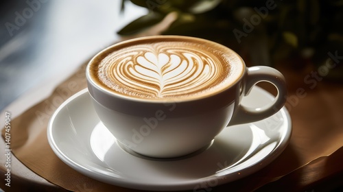 milk, hot drink, cream, illustration, latte, espresso, ceramic, cup, saucer, spoon, sugar, cube, rich, dark, contrast, intricate, closeup, sharpened, surface, delicate, presentation, background, blurred, centrepiece, crafted, perfectly, artistic