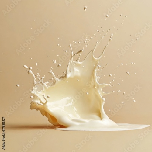 Milk splash studio shot on beige background showing dynamic movement and liquid texture for food and beverage concepts