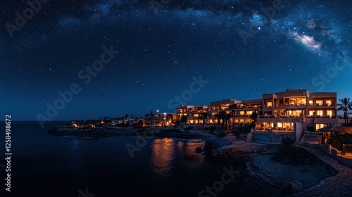 Milky Way Nightscape over Coastal Resort