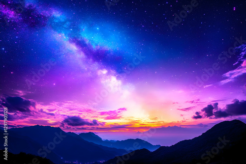 milky way, galaxy, star, night, sky, sunset, mountain, landscape, nature, astrophotography, space, cosmos, universe, colourful, vibrant, purple, pink, orange, yellow, blue, cloud, mountain chain, scenic, view, beautiful, amazing, spectacular, breathtaking, majestic, tranquil, serene, peaceful, dark, light, bright, photo, image, picture, wallpaper, background, art, travel, adventure, wilderness, night sky, celestial